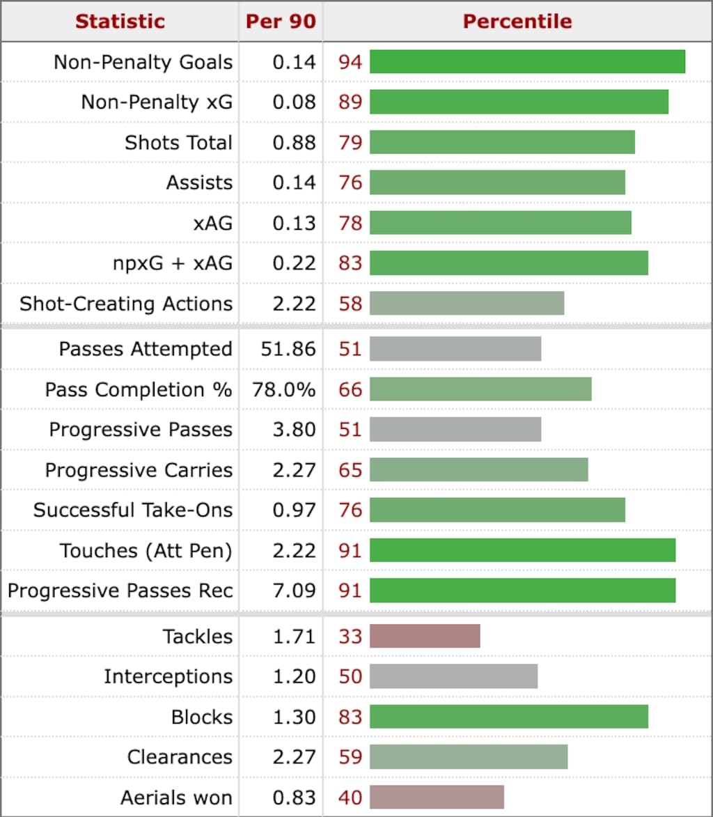 Kerkez offers a fantastic attacking profile (seen above in his overall data set provided by FBRef), the 19-year-old full Hungarian international makes light work of beating his man to get into attacking spaces down the left channel to generate chances and has not taken long for wandering eyes in Germany and England to hone-in on his impressive performances at AFAS Stadion.