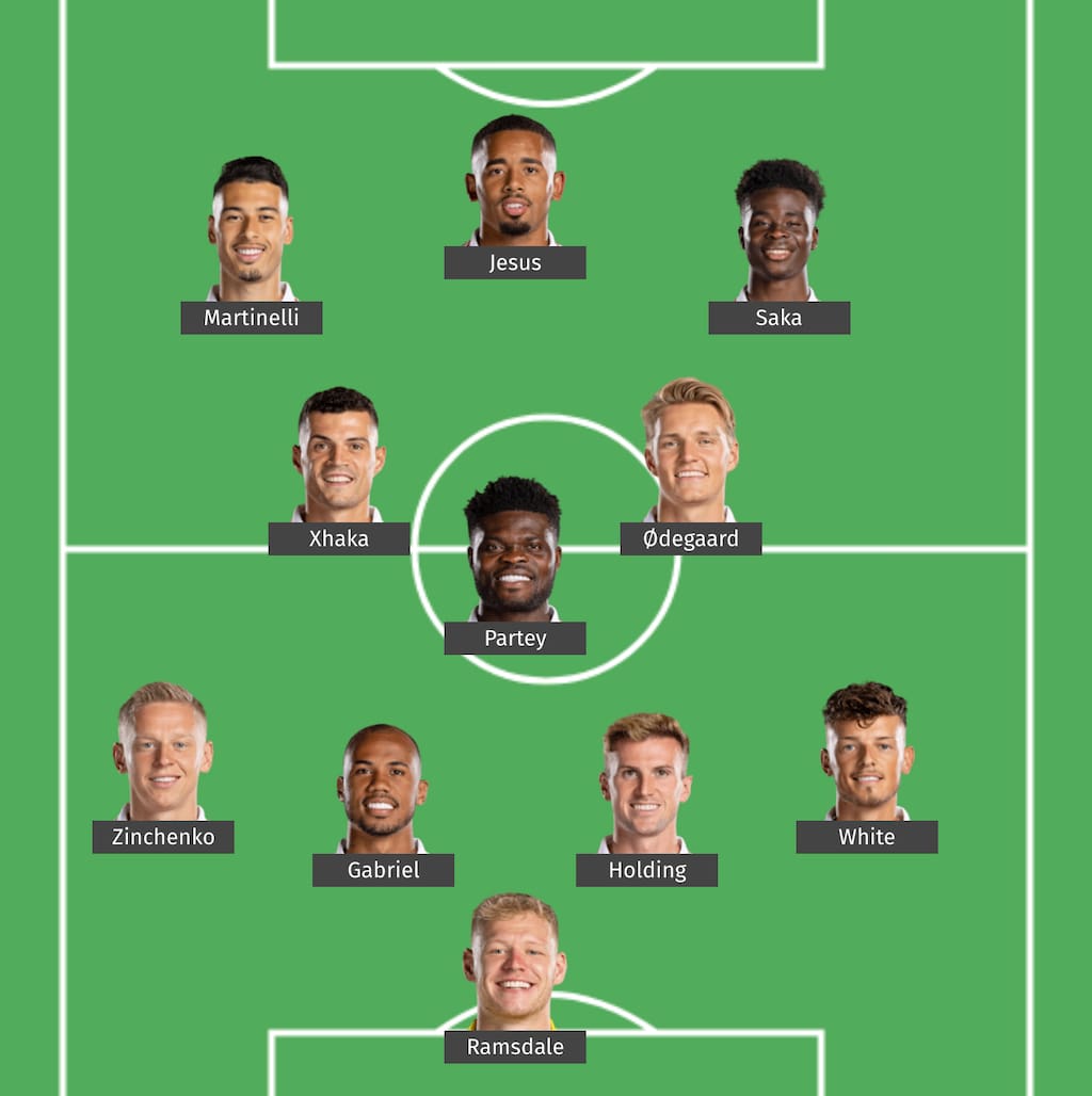 - Out: William Saliba, Takehiro Tomiyasu, Eddie Nketiah, Mohamed Elneny