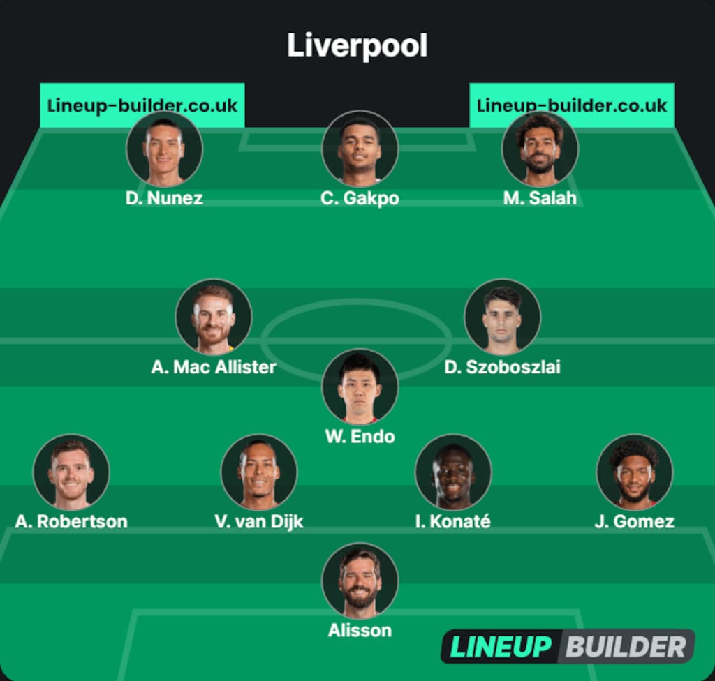 With an otherwise full squad to choose from, Klopp has plenty of options in attack, but the form of Darwin Nunez could see him continue to start, while Luis Diaz and Diogo Jota may have to make do with spots on the bench.