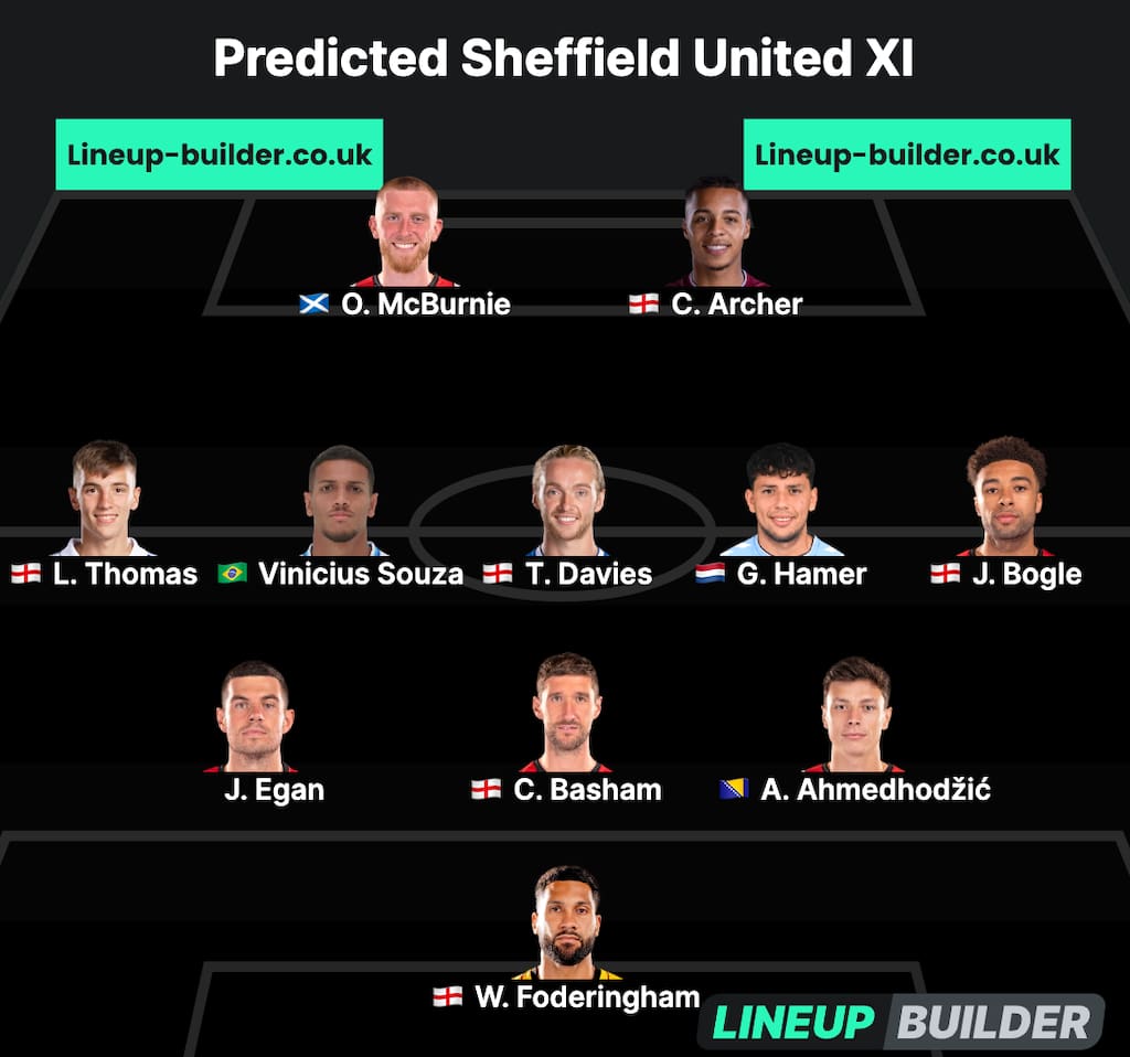 Ben Osborn, John Fleck, and Max Lowe are guaranteed to miss out via injury, while George Baldock, Daniel Jebbison, Rhian Brewster, Rhys Norrington-Davies, and William Osula are all doubts pending further assessments in the run-up to tomorrow’s clash.